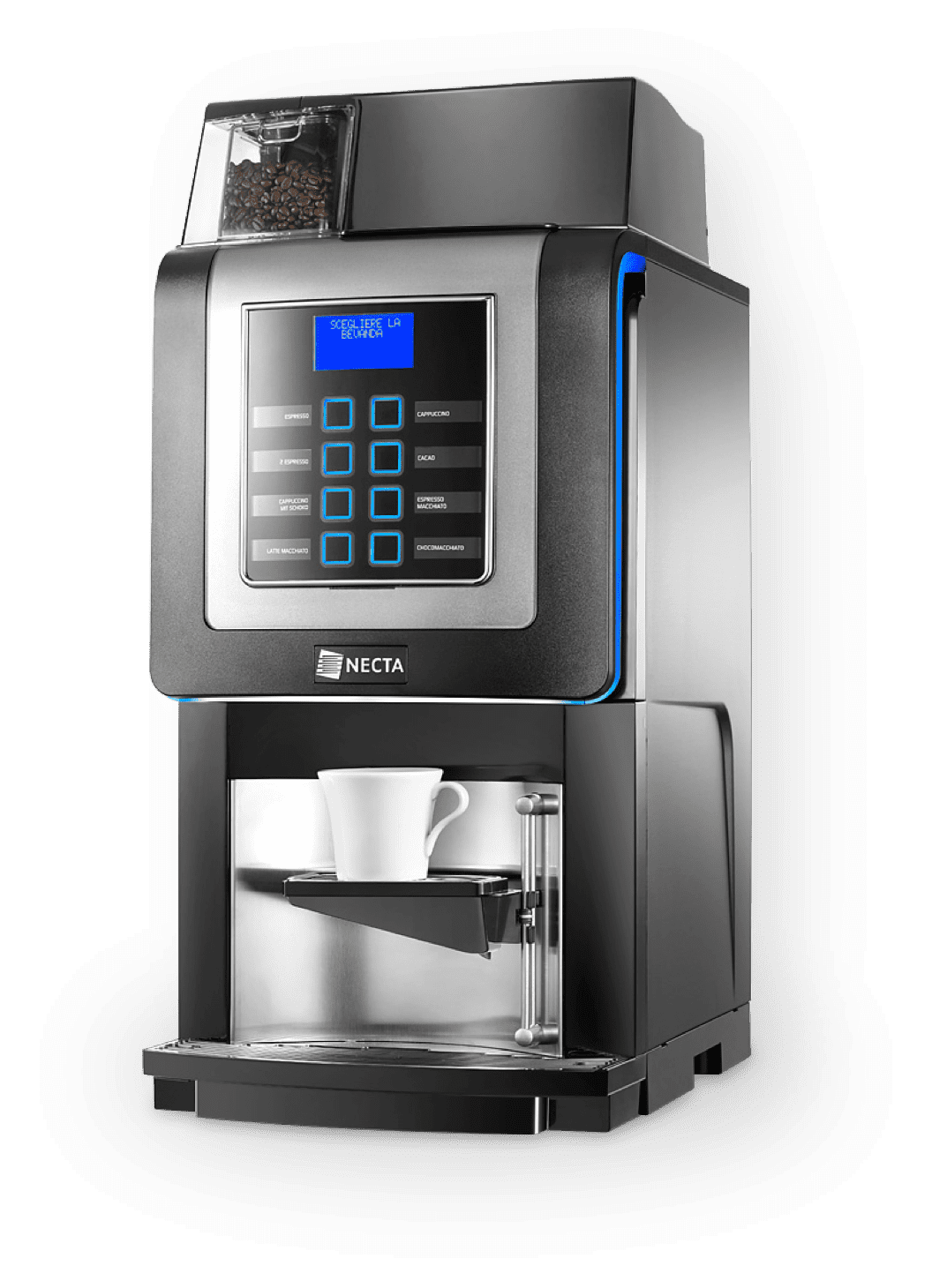 Korinto Prime si indirizza al mercato HoReCa (Hotel, Restaurant e Café), integrando la gamma Necta con le sue soluzioni multi-bevande. Contraddistinto da un design elegante e robusto, dispone di una zona erogazione in acciaio inox in grado di ospitare brocche alte fino a 24 cm. Grazie a un’ illuminazione perfetta e alla tastiera capacitiva, Korinto Prime si inserisce facilmente in ogni ambiente in cui è collocato. Questo fantastico distributore automatico multi-bevanda migliora qualsiasi locazione di piccole-medie dimensioni: dagli alberghi ai bed&breakfast, dai piccoli locali ai punti di ristoro per le imprese e le scuole.